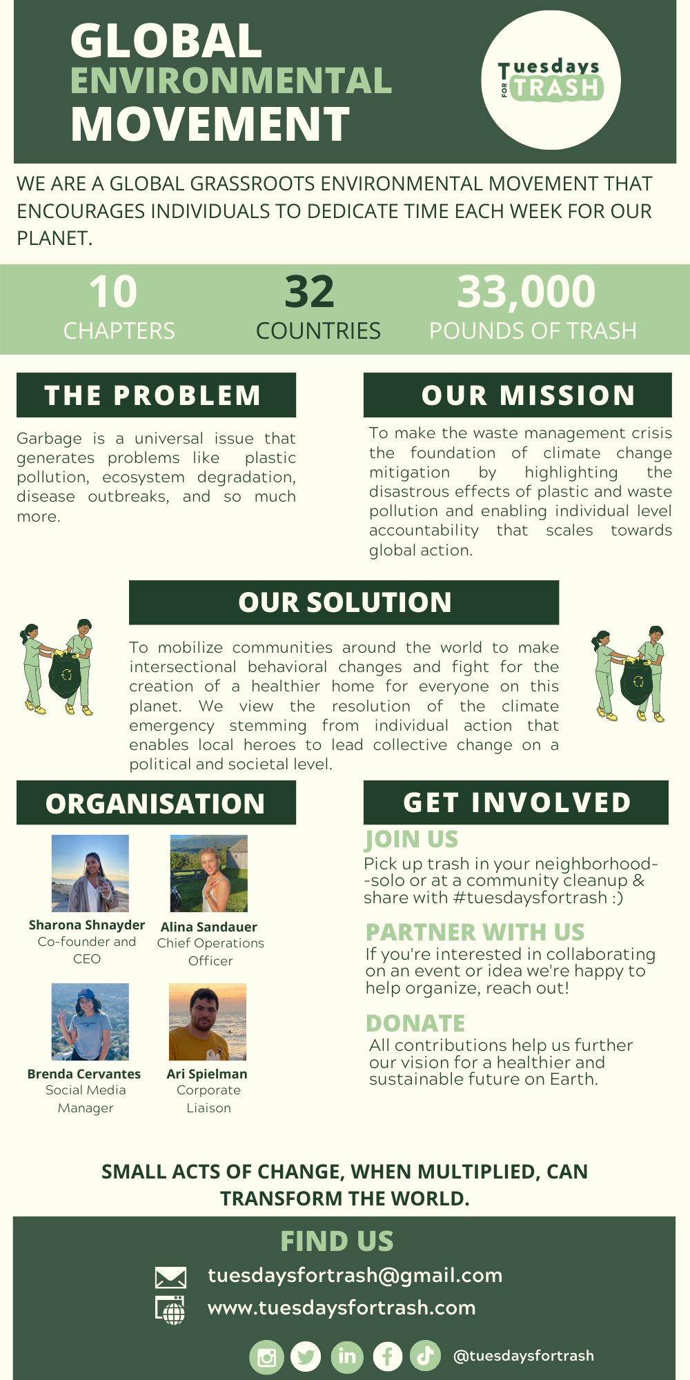 We are a global network of changemakers actively fighting for the creation of a cleaner and healthier home for everyone on this planet by dedicating time weekly to picking up trash!