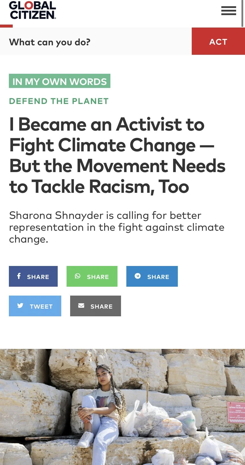 Meet @ShnayderSharona a Nigerian-Israeli activist who started a grassroots campaign in #Israel & 23 countries encouraging people to pick up trash on a weekly basis. Link to Twitter/X